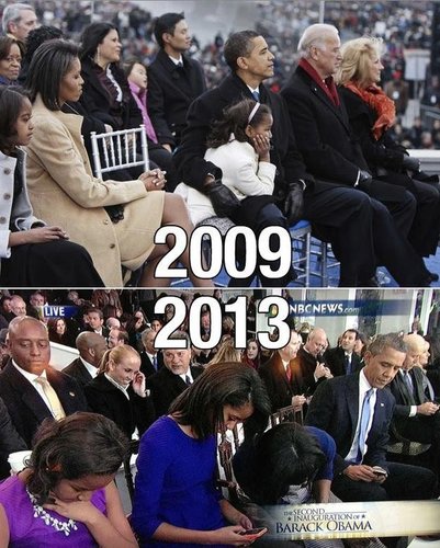 我不想參與電子産品的利弊這個話題的討論,更不想參與國家體制問題的辯論,只是想警示一下自己:別忘了最重要的人就在身邊。前不久一則媒體報導說,一次家庭聚餐中,年邁的祖父多次想和孫子孫女說說話,但孫子孫女卻人手一部手機玩得正開心,受到冷落的祖父一怒之下摔盤離席。想到去年,我還得意洋洋地發過“過年走親戚就是考驗手機電量和流量的大好時機”的微博,並且得到了很大的轉載量。現在想來,真是太慚愧。人與人之間最原始的,面對面,心靈貼近心靈的交流模式,在我們這一代開始搖搖欲墜,能不能,別再讓感情被技術和機器淡化分散了。